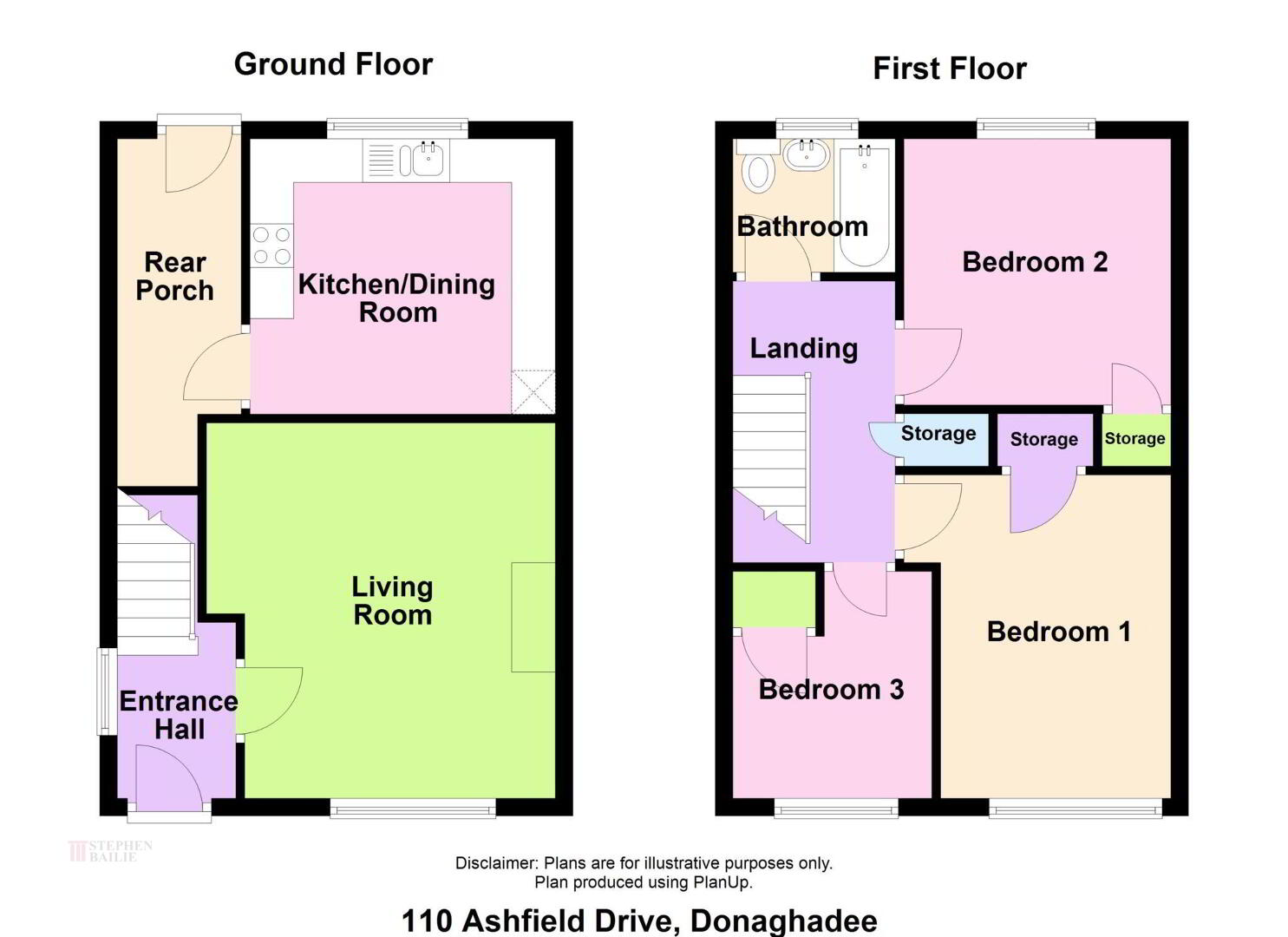 While in need of some updating the accommodation comprises on the ground floor a lounge and kitchen with separate utility hall and on the first floor you have a fully tiled bathroom and three bedrooms.