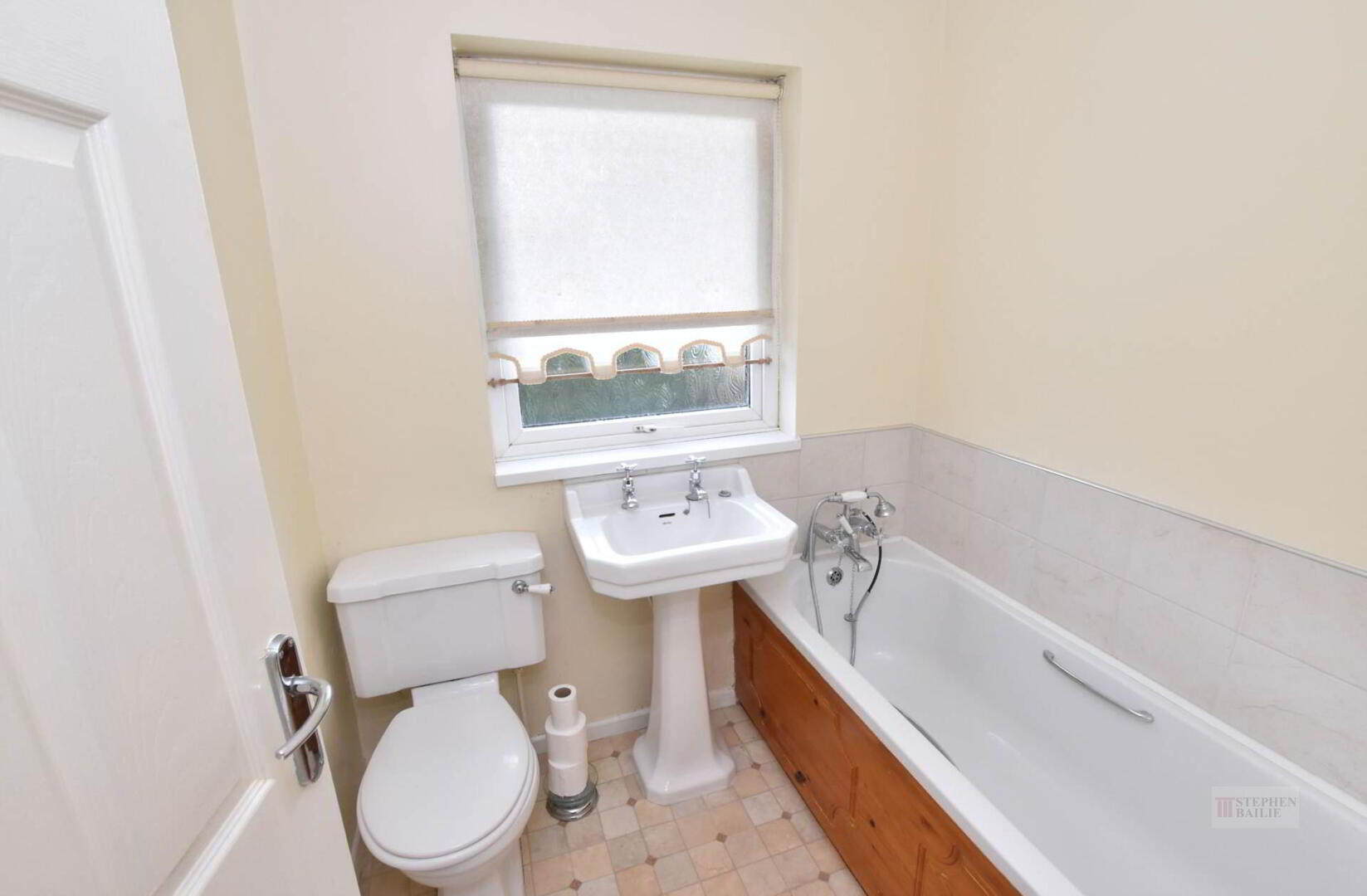 Panel bath with mixer taps. Pedestal wash hand basin. Low flush w.c.