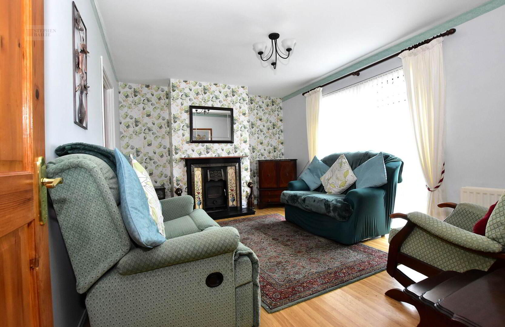 - Lounge with attractive picture tiled fireplace