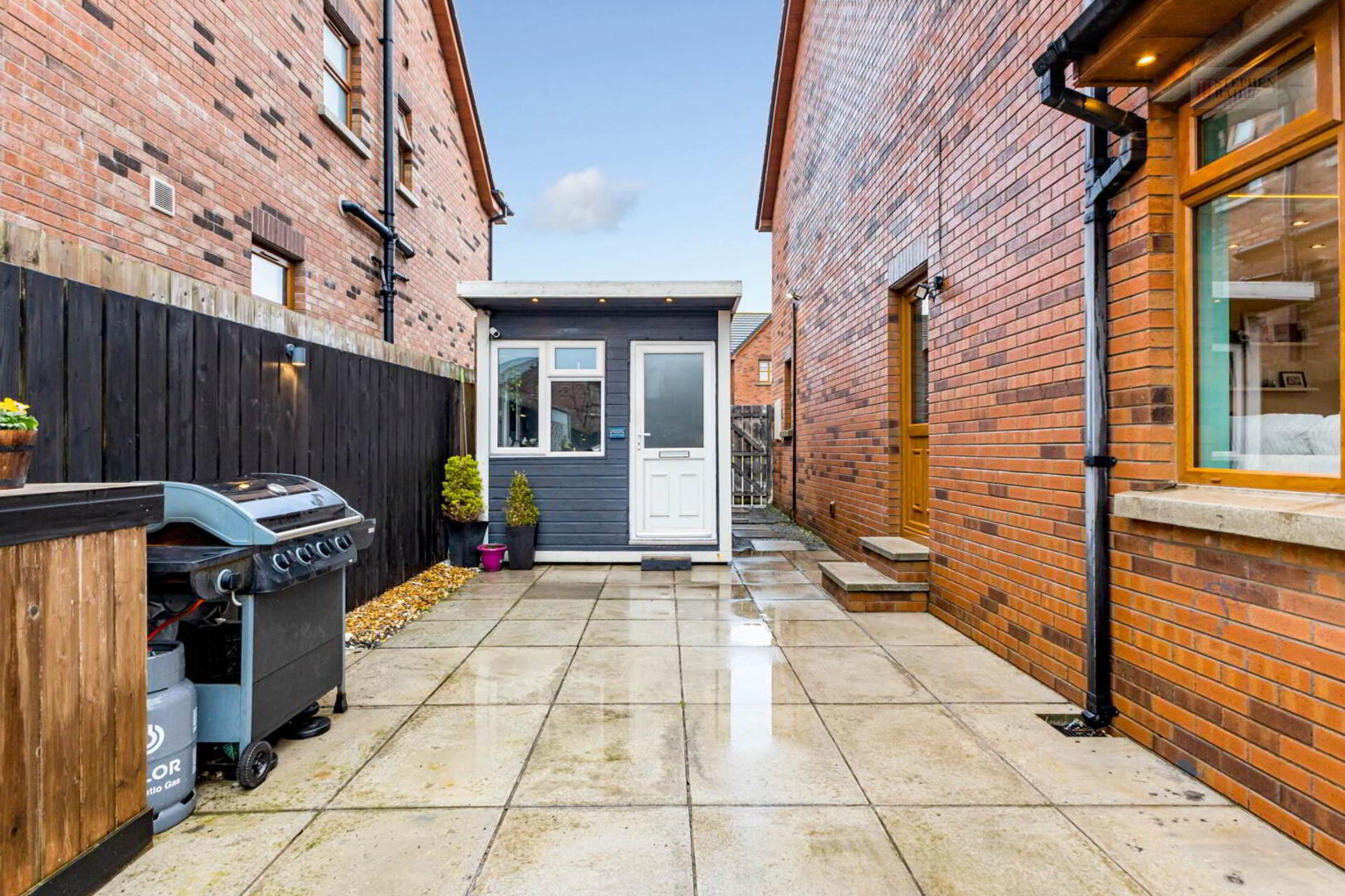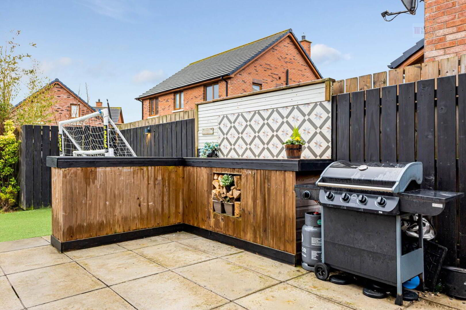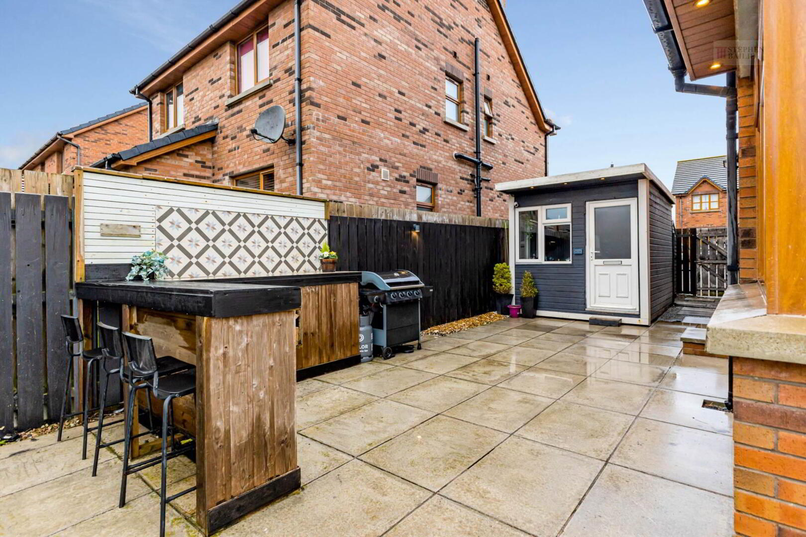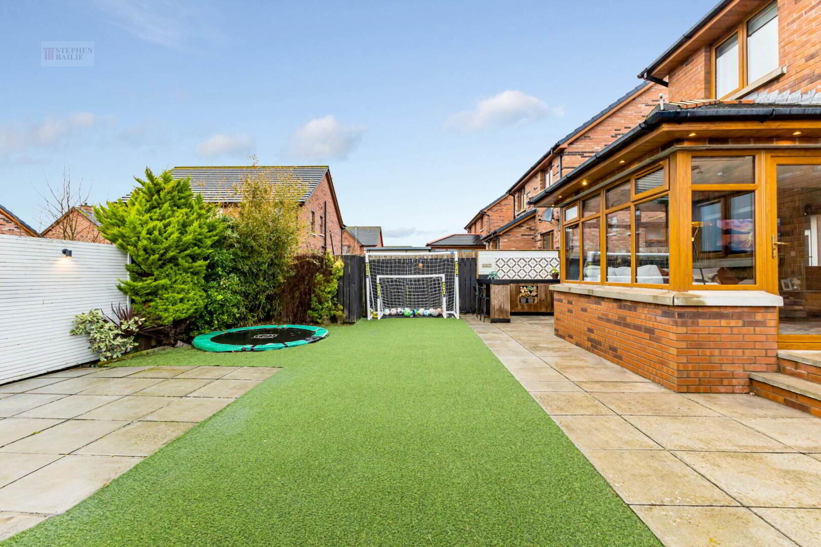 Externally, the property benefits from a private driveway and gardens to both the front and rear. The rear garden has been enhanced with 3G grass, ideal for sports enthusiasts or low-maintenance family enjoyment, along with designated social areas perfect for entertaining during the summer months. A fully wired garden room offers an excellent work-from-home space, hobby room or additional retreat.