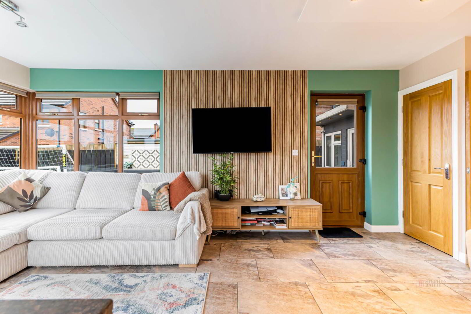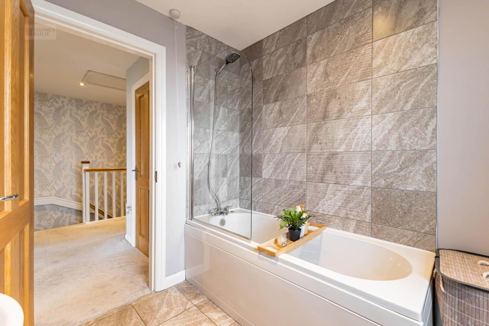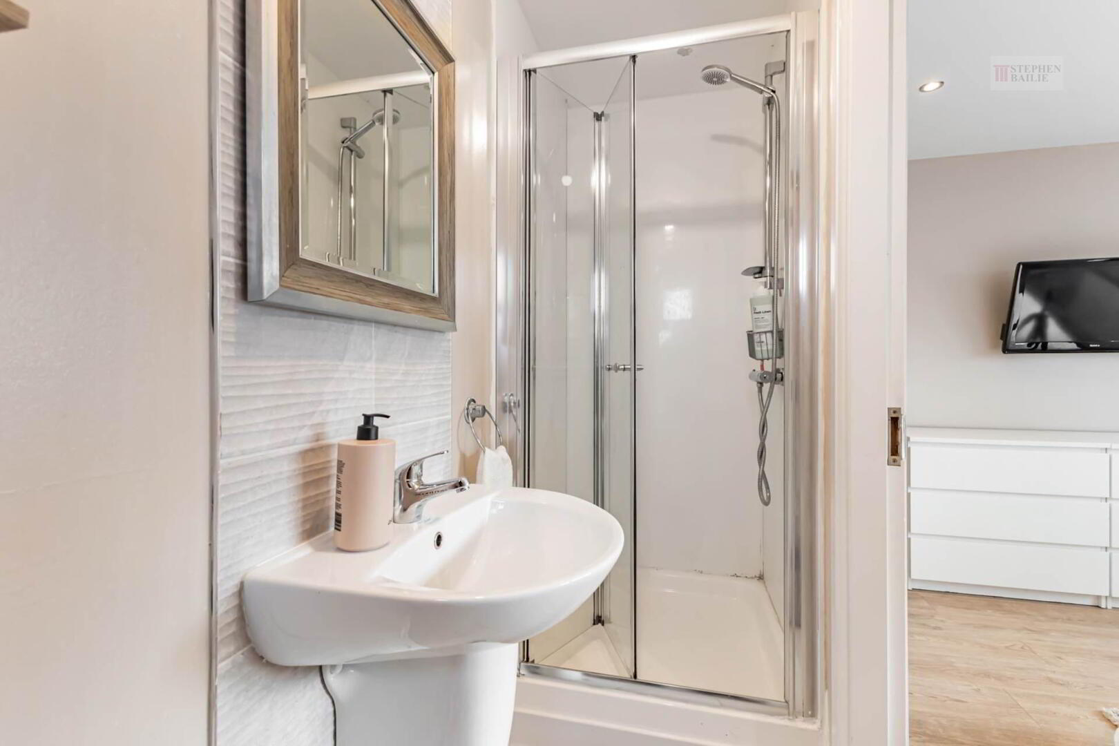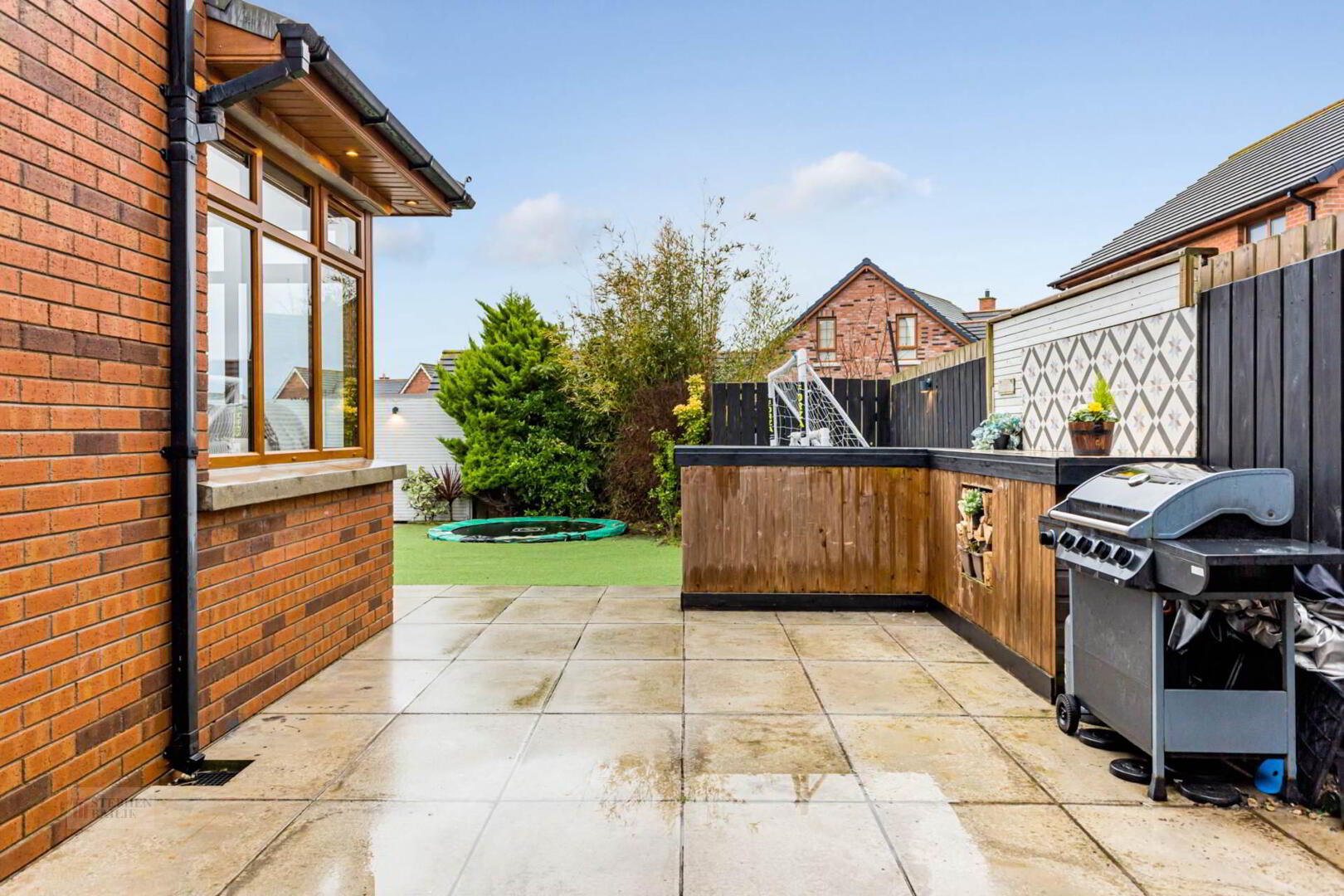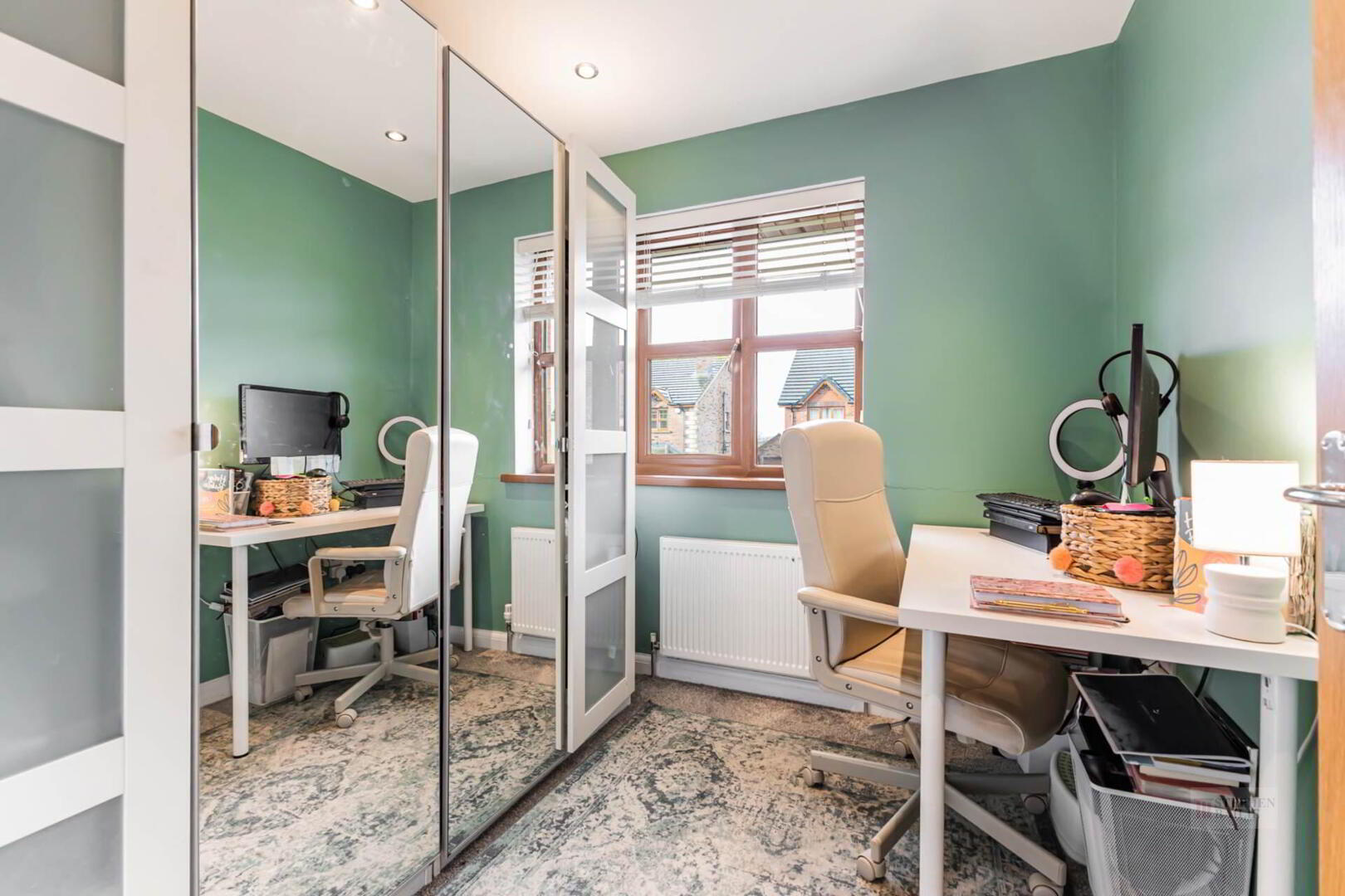 Externally, the property benefits from a private driveway and gardens to both the front and rear. The rear garden has been enhanced with 3G grass, ideal for sports enthusiasts or low-maintenance family enjoyment, along with designated social areas perfect for entertaining during the summer months. A fully wired garden room offers an excellent work-from-home space, hobby room or additional retreat.