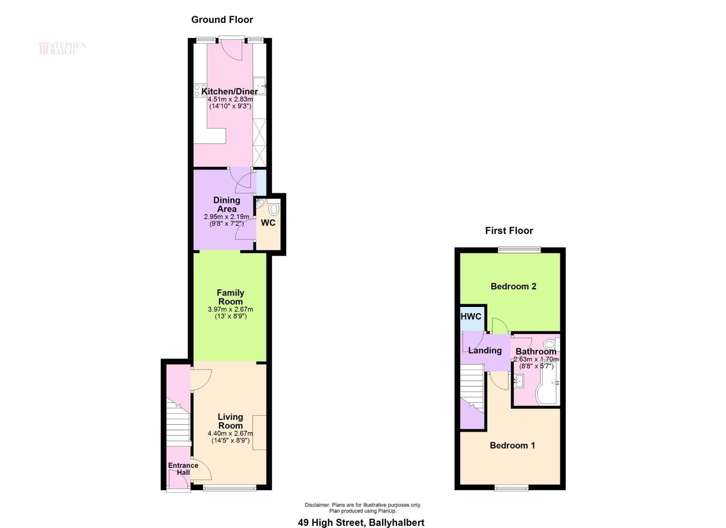 Upstairs, the property comprises two well-proportioned bedrooms and a family bathroom, providing comfortable and well-balanced accommodation.