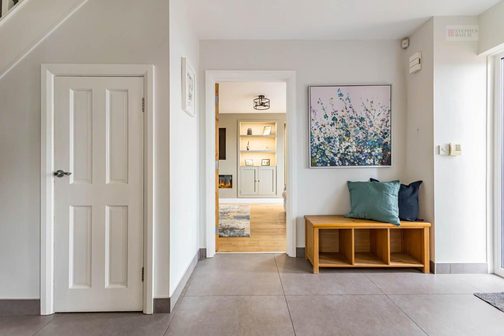 Tiled floor. Understair storage.