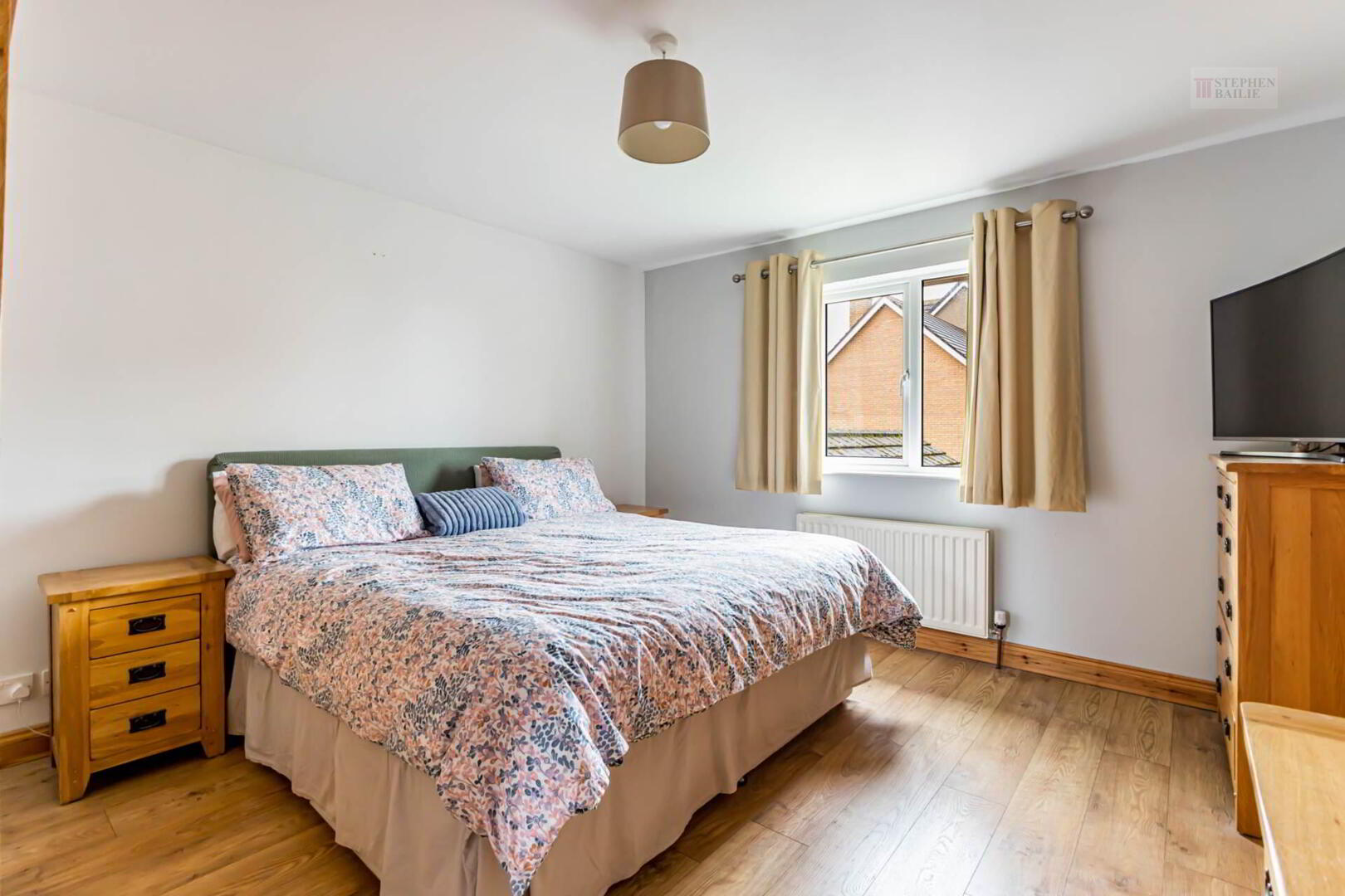 Media wall. Laminated floor. Double glazed patio doors.