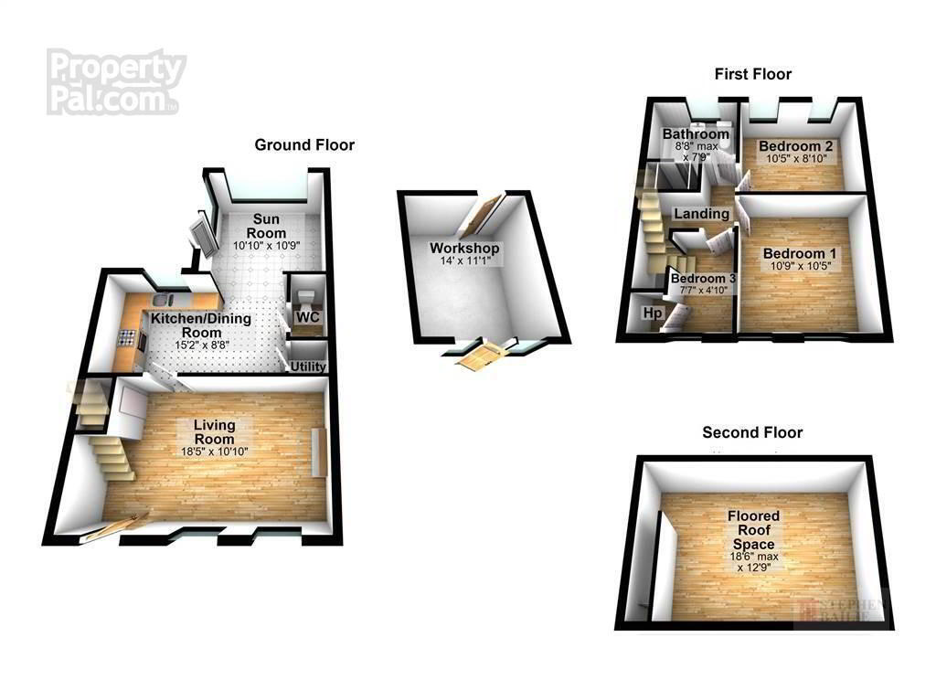 Roofspace - 18'6" (5.64m) Max x 12'9" (3.89m)