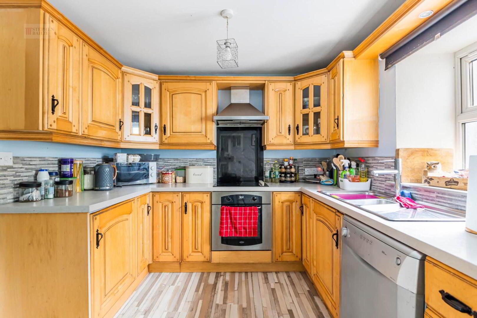 1 14 tub single drainer stainless steel sink unit. Good range of fitted high and low Kitchen units with glazed display cabinets and laminate work tops. Four ring electric hob and built in under oven.