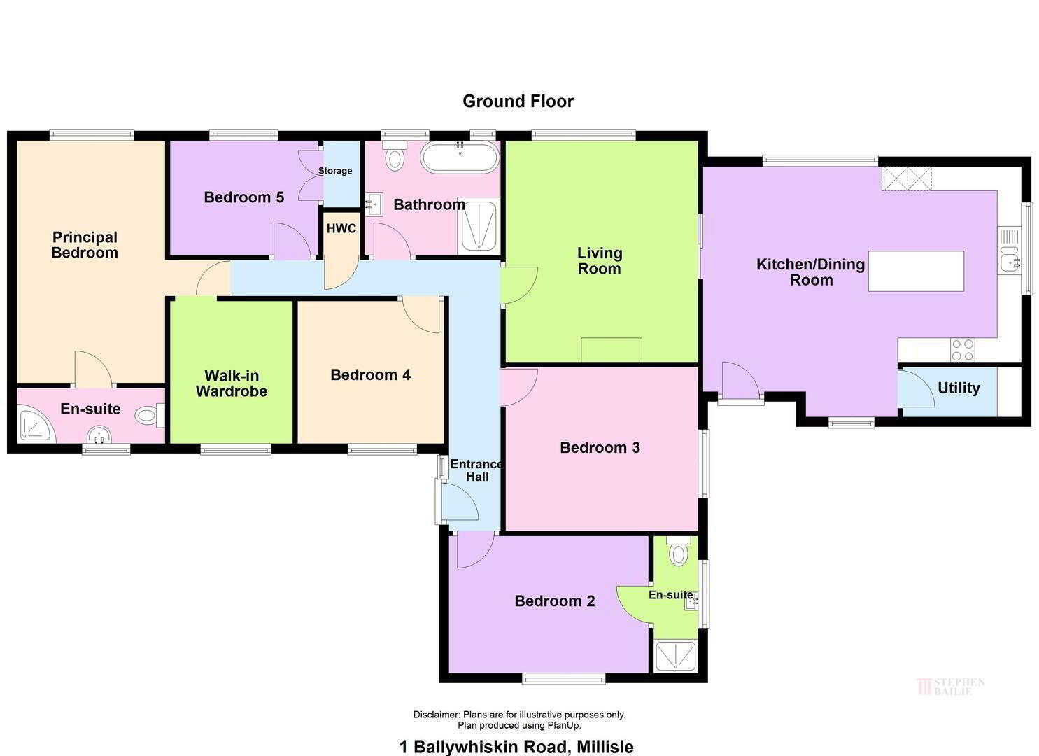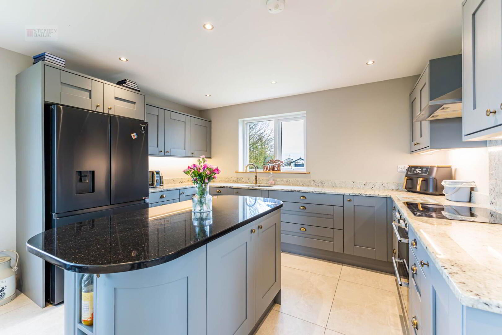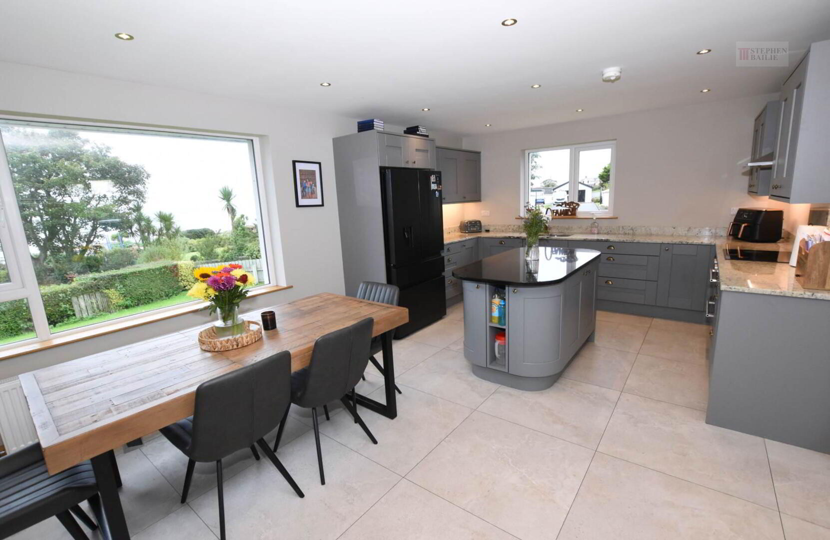 Situated on an elevated site in the sought after town land of Ballywhiskin, this impressive five bedroom detached bungalow enjoys uninterrupted, panoramic sea views over Ganaway Bay to the Scottish and Manx coasts